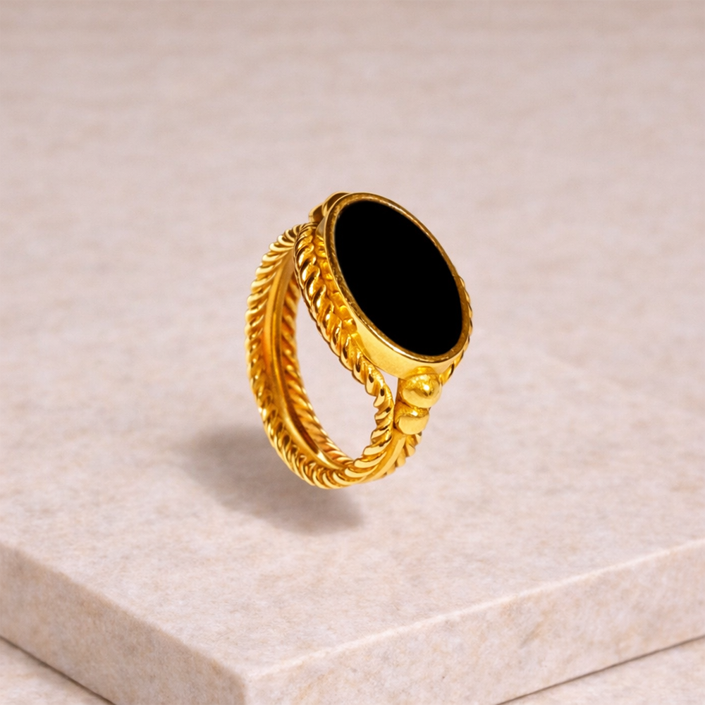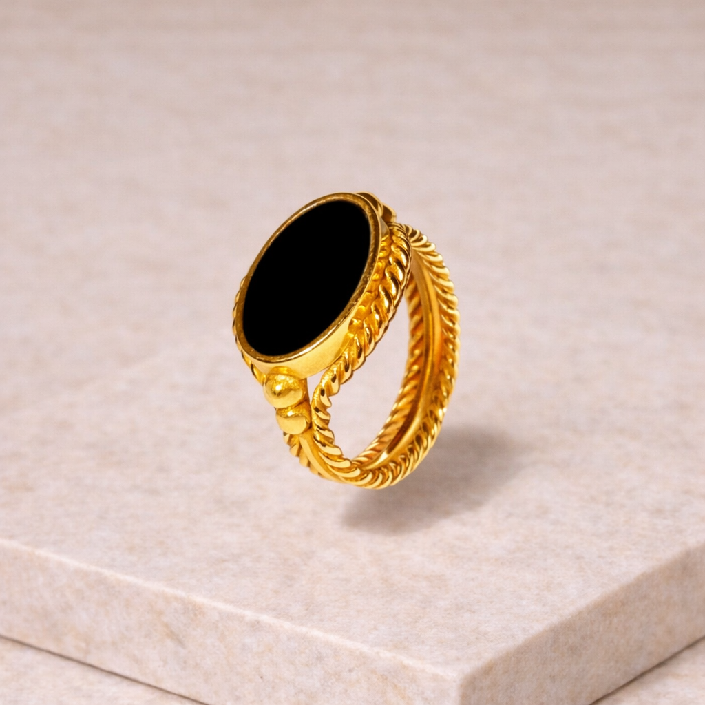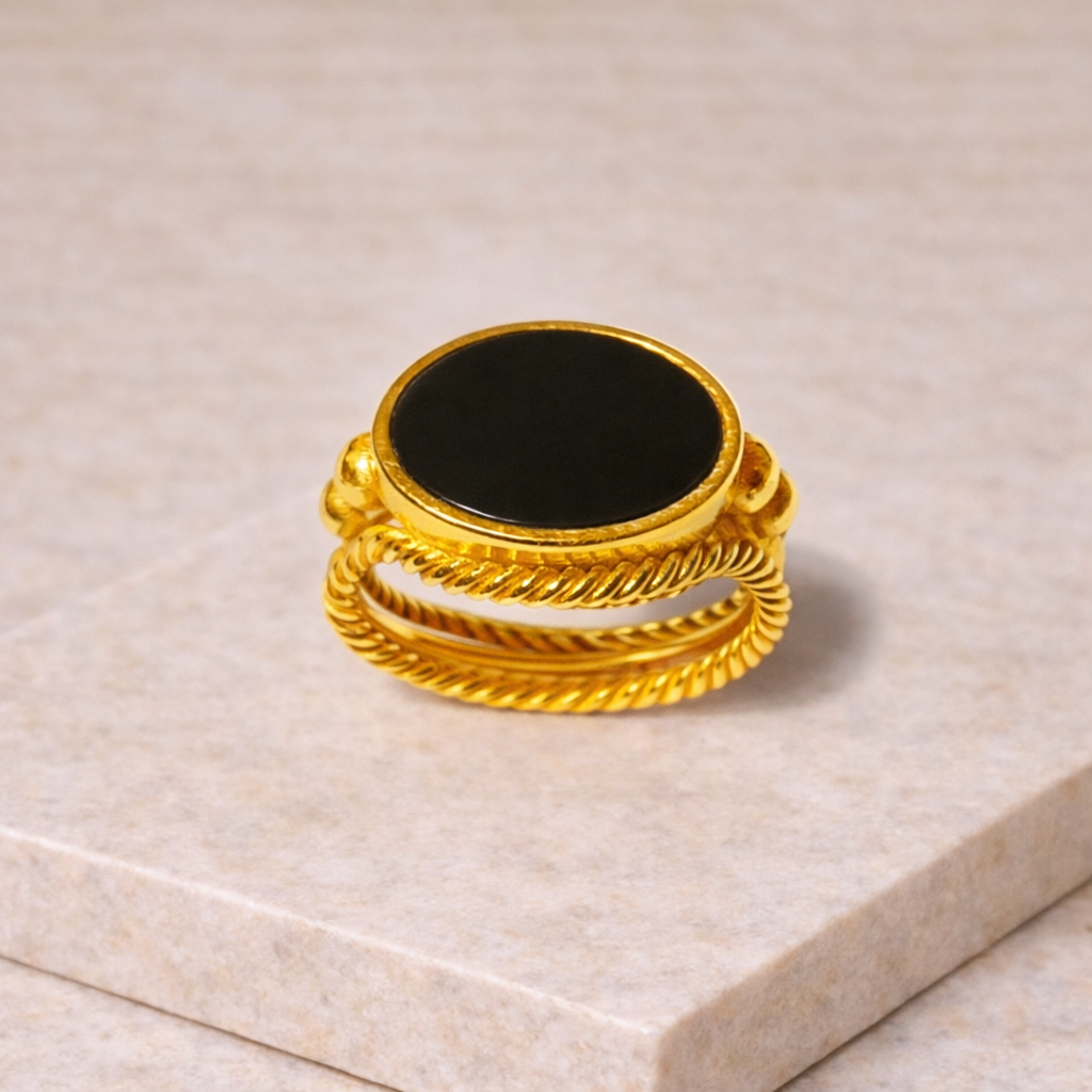 Καλαίσθητο δαχτυλίδι με τριπλό περίγραμμα, εμπνευσμένο από την κοσμηματοποιία του Εύξεινου Πόντου. Το σχέδιο είναι λιτό, απέριττο, κλασσικό και διαχρονικό.