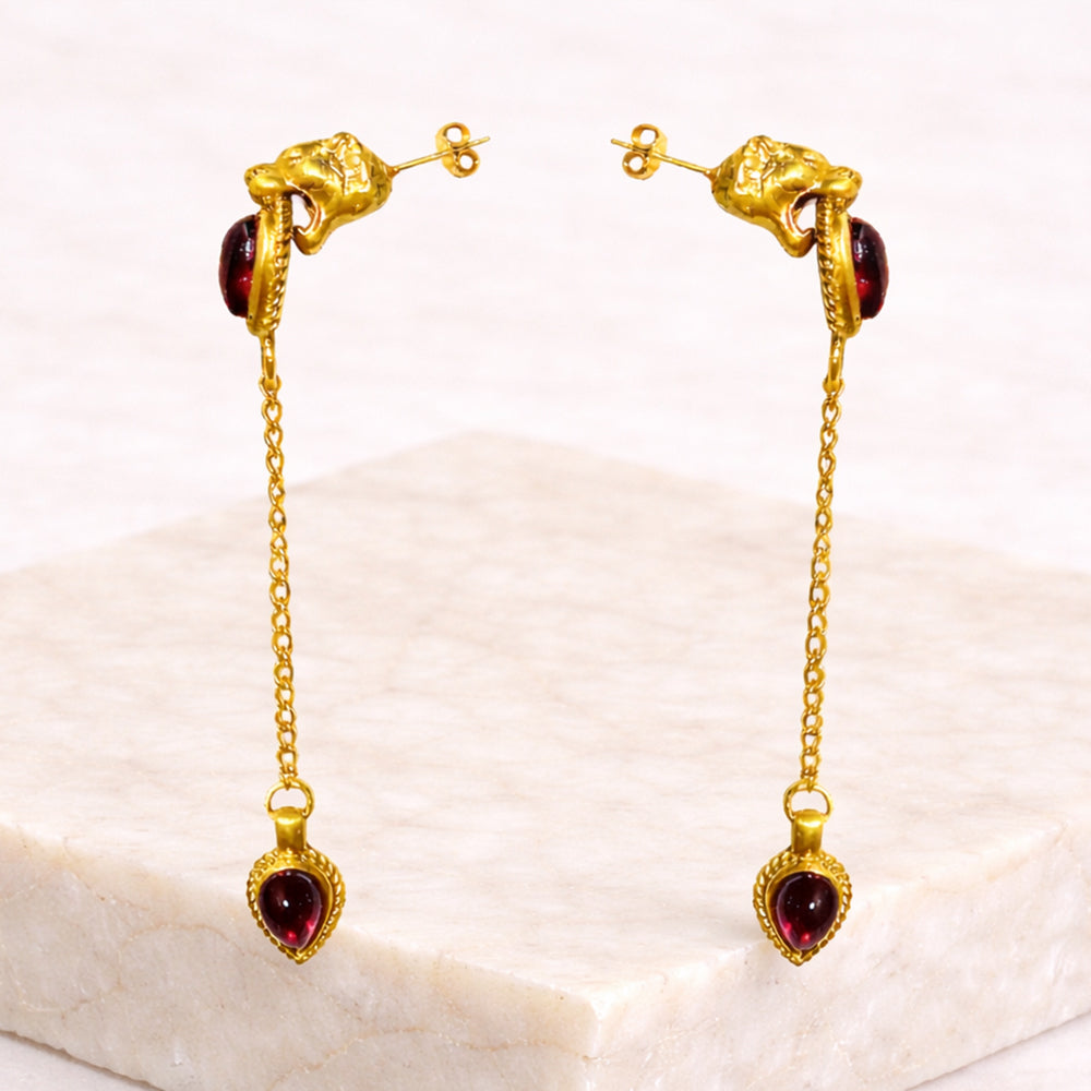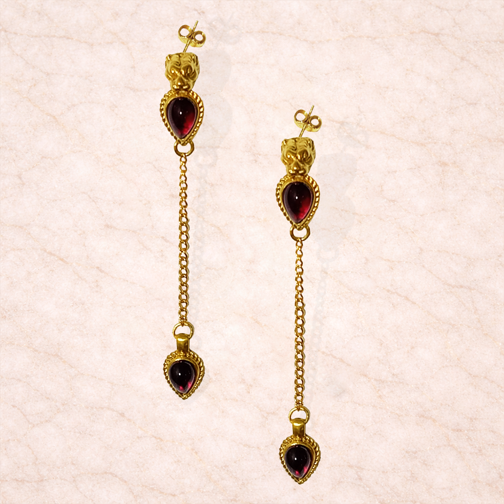Μοναδικό σχέδιο σκουλαρικιών με καταγωγή την Ποντική Ολβία, Το μοντέλο περιλαμβάνει πανέμορφο διάκοσμο και τον χαρακτηριστικό συνδυασμό του χρυσού με το βαθύ κόκκινο.